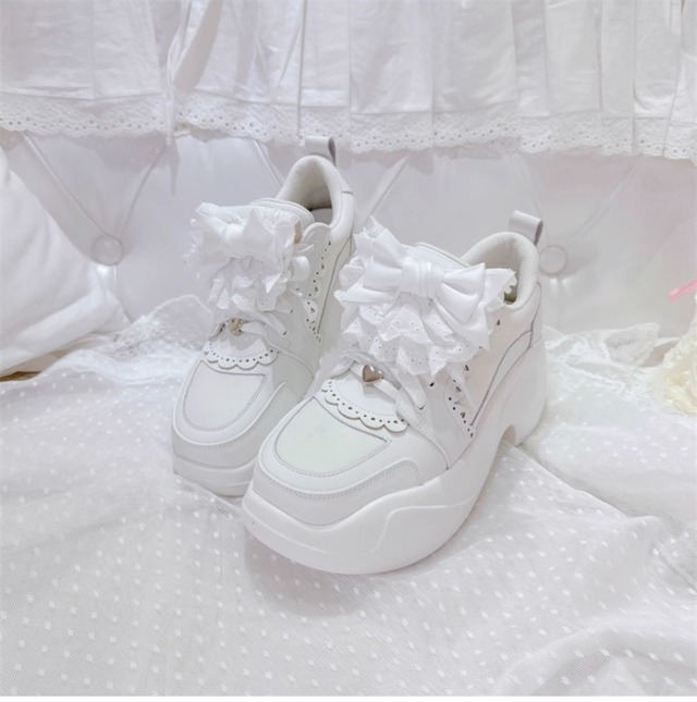 レーストリムがポイントのロリータ風厚底スニーカー。スイートロリータスタイル。