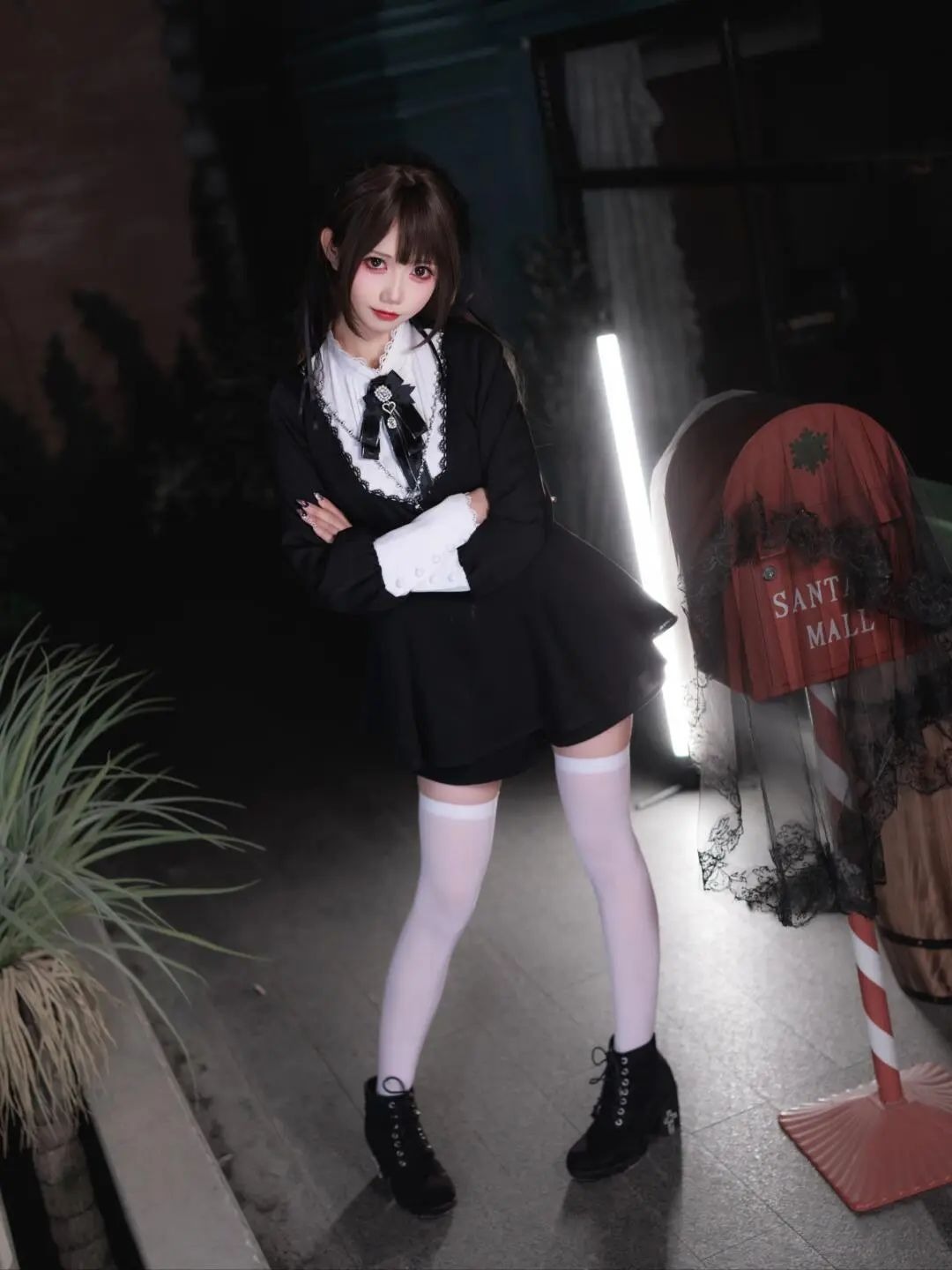 黒のロリータ、白ソックスに黒ブーツ。