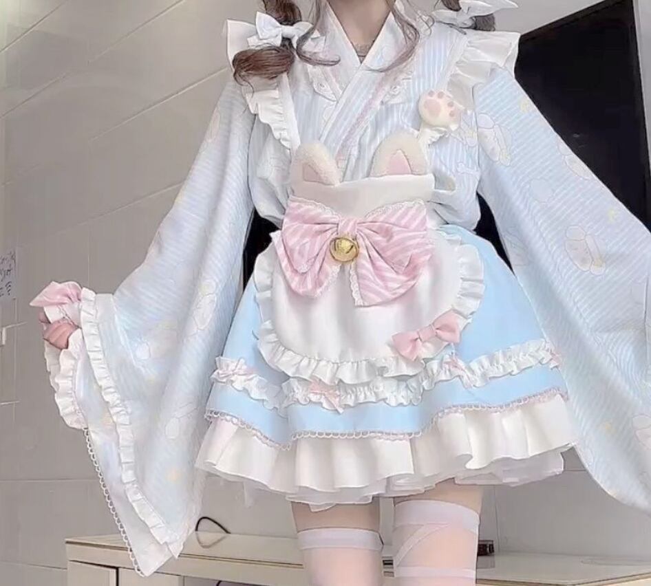 【セット内容】トップス、スカート、エプロン、蝶々クリップアクセサリー