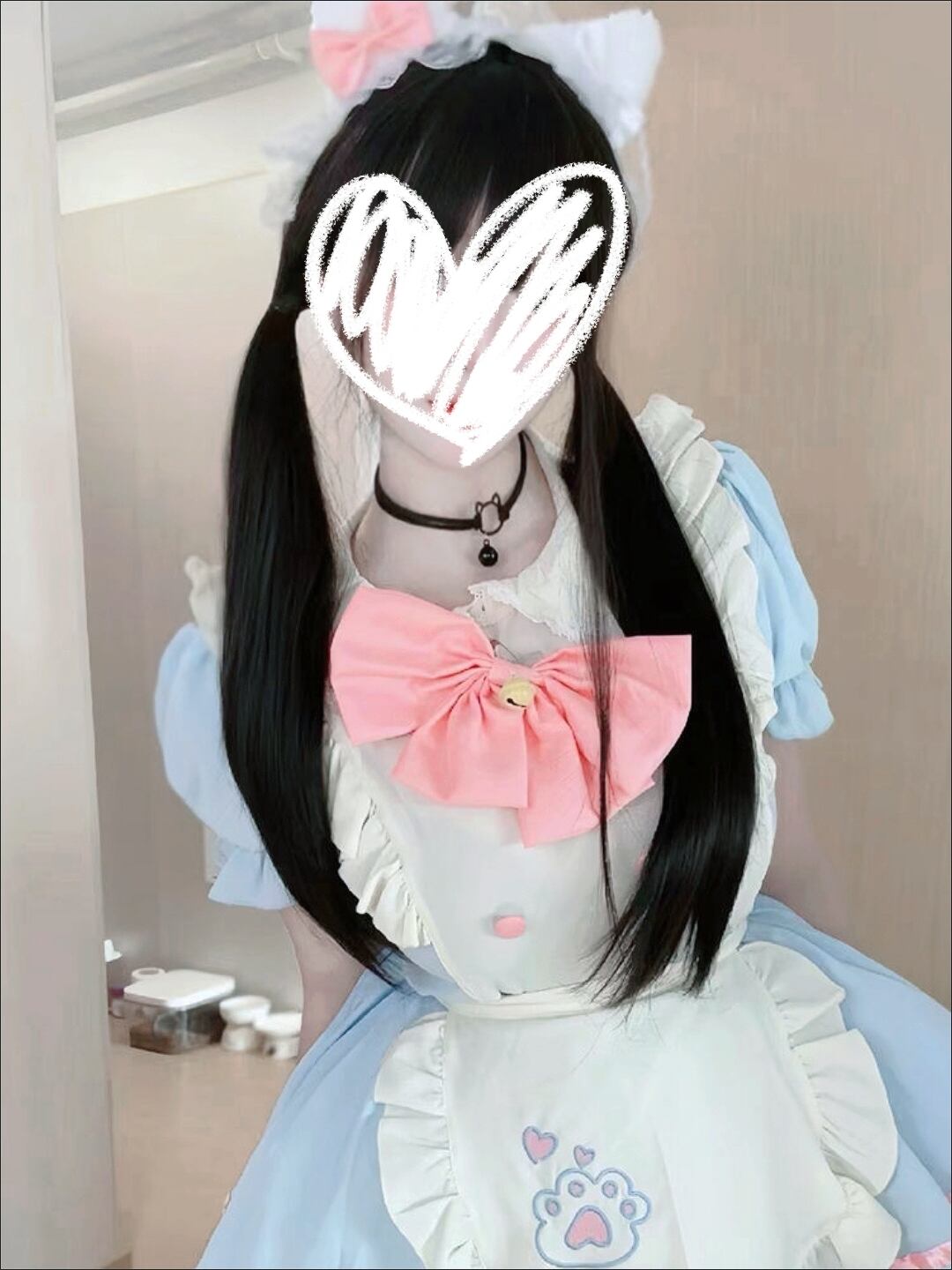 【セット内容】ワンピース、エプロン、鈴チャーム付き蝶々リボン、小さなリボン