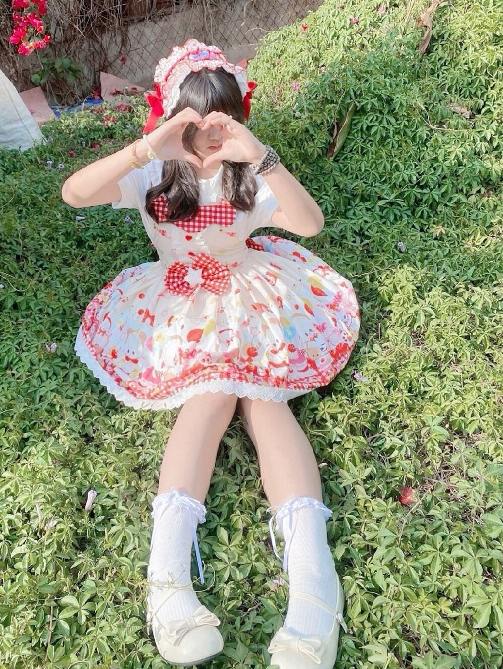 甘くて可愛い♡ クリームイエロー×赤のロリータジャンパースカート