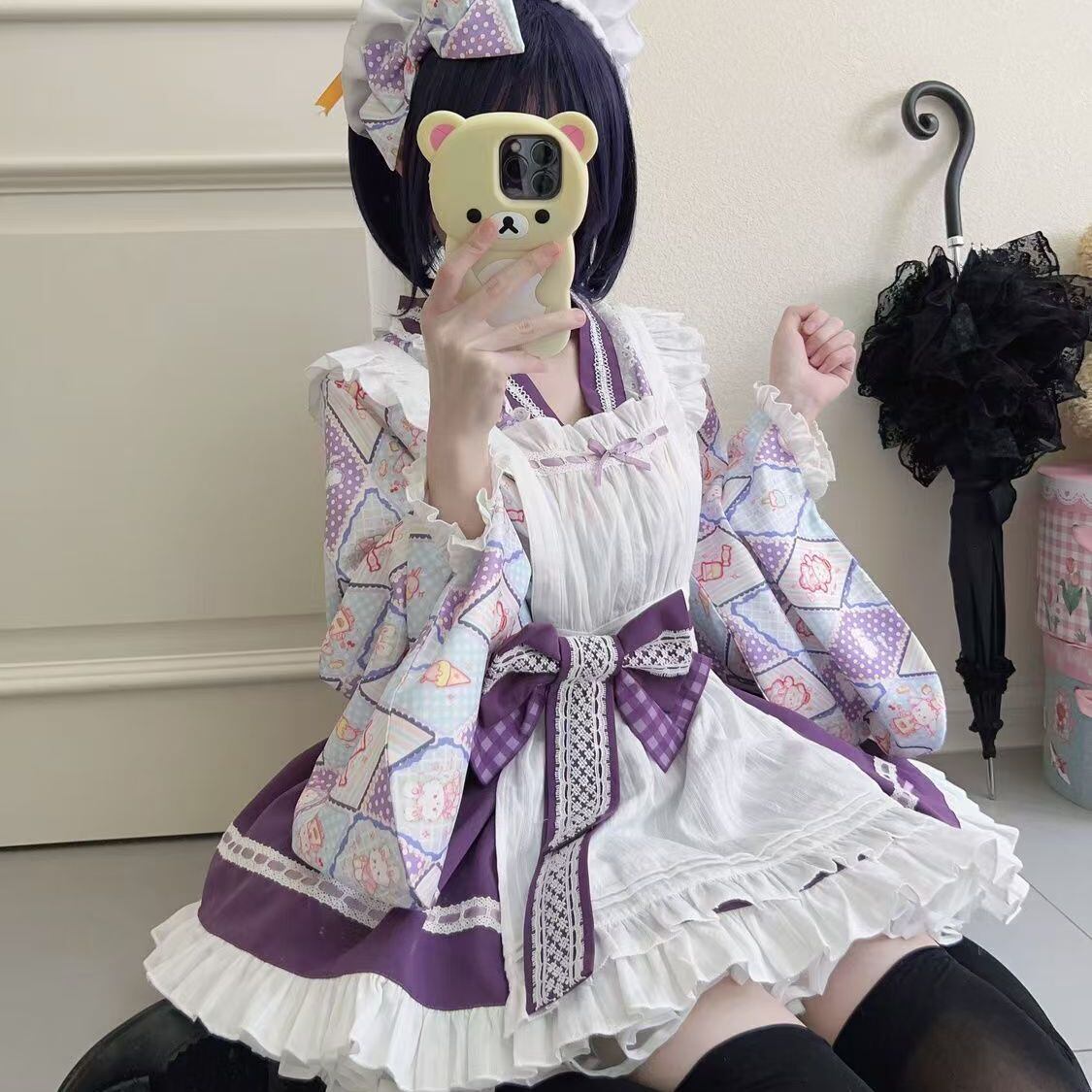 和風 + メイドエプロンの重ね着、フルスケールの萌えプリントがまるでおとぎ話を身にまとっているような.....