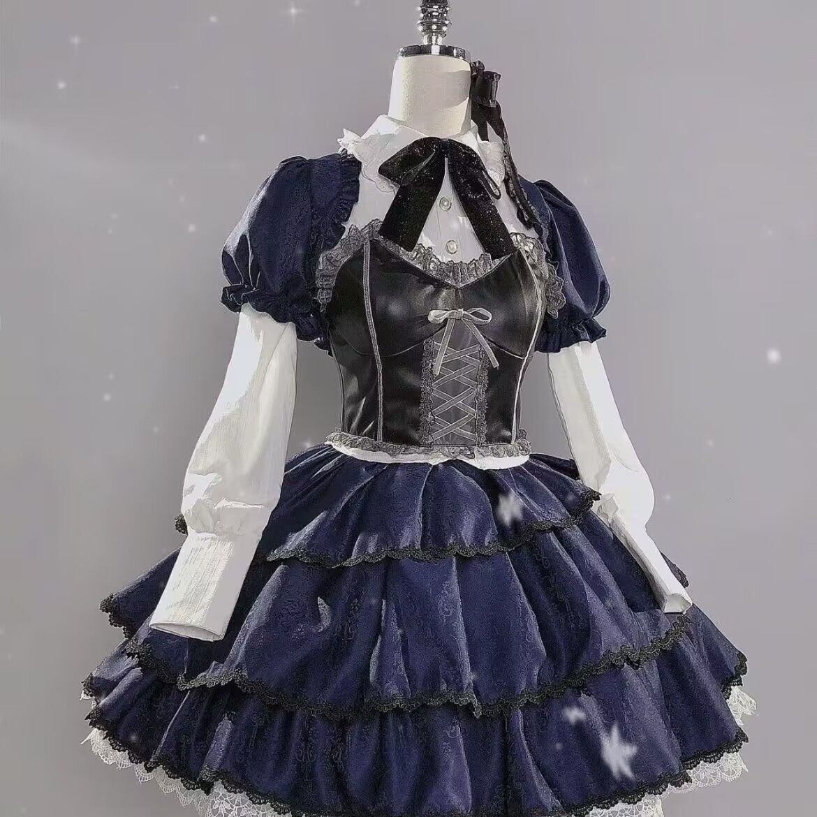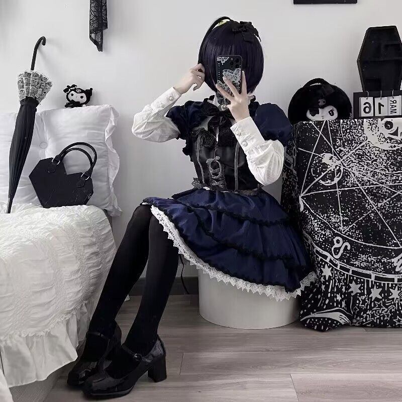 ブラックレザーのコルセット部分には繊細なレースアップを施し、ゴシックな冷たさと神秘さを演出。