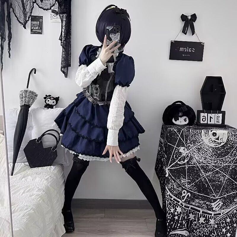 深みのあるネイビーブルーのスカートに、幾重にも重なるデザイン。