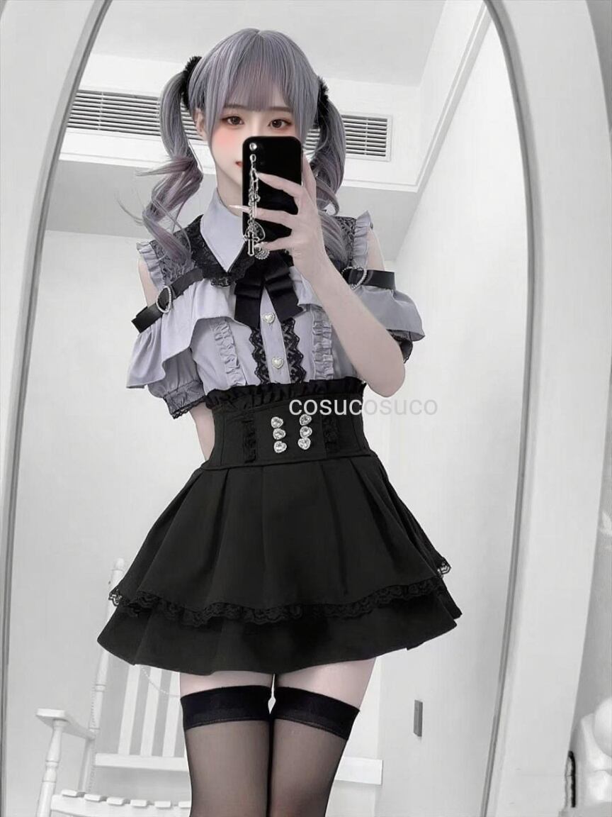 色の組み合わせがとってもバランス良くて、着心地は楽ちんでピタッとしないよ。シャツの襟元デザインがすごくオシャレで、生地は通気性があって伸びるから動きやすい♪オフショルダーでスッキリ見えるし、めっちゃかわいい!