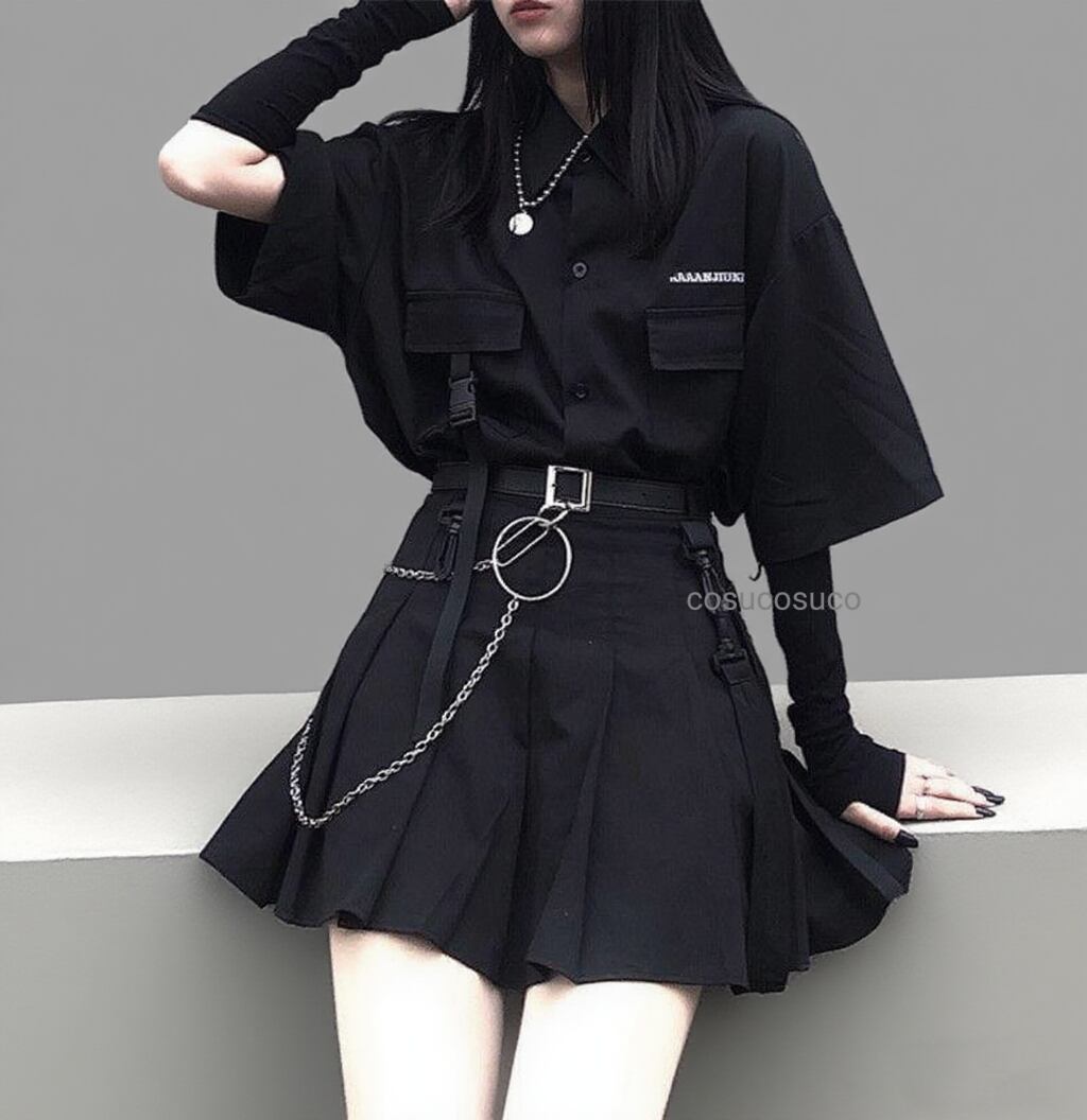 【セット内容】 シャツ+プリーツスカート+チェーン+ベルト
