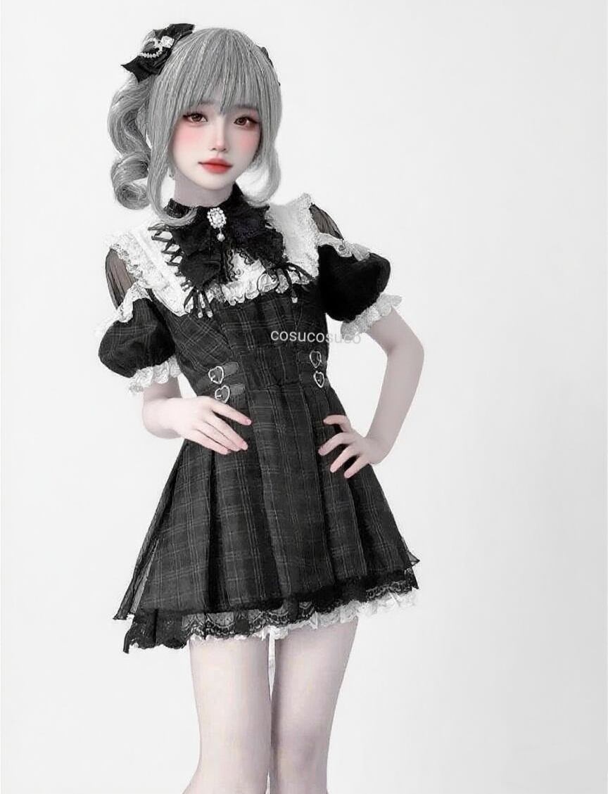 クラシックなチェック柄にブラック&ホワイトレースを合わせた、ダークながらも甘さ感じるこだわりデザイン。