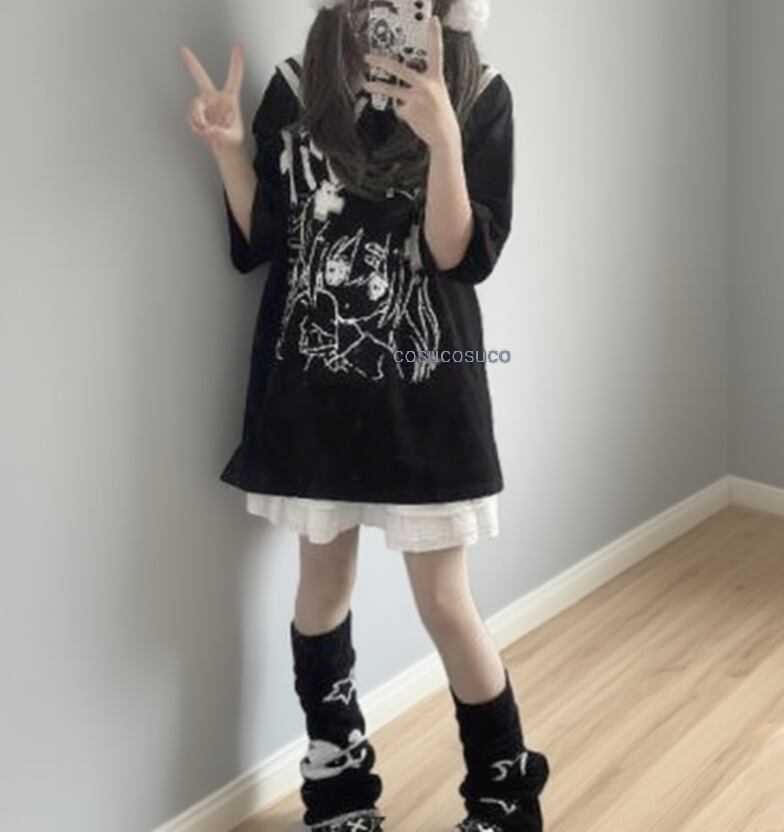 胸元に施されたキャラクタープリントが視覚的にインパクトを与え、シンプルなワンカラーデザインながら個性が光ります。セーラー襟が爽やかさを演出し、バックスタイルもとても可愛らしい印象を与えます。