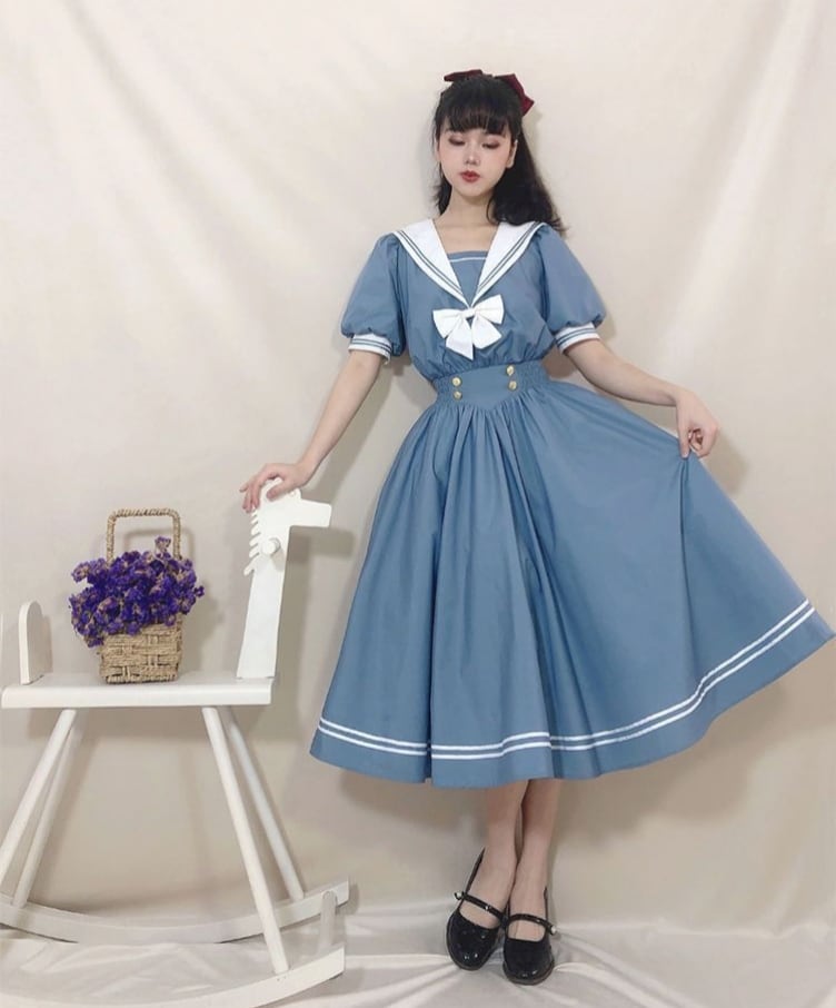 ✔️ 定番のセーラーカラー+パフスリーブで、まるでドラマのヒロインみたいなフィルター効果