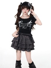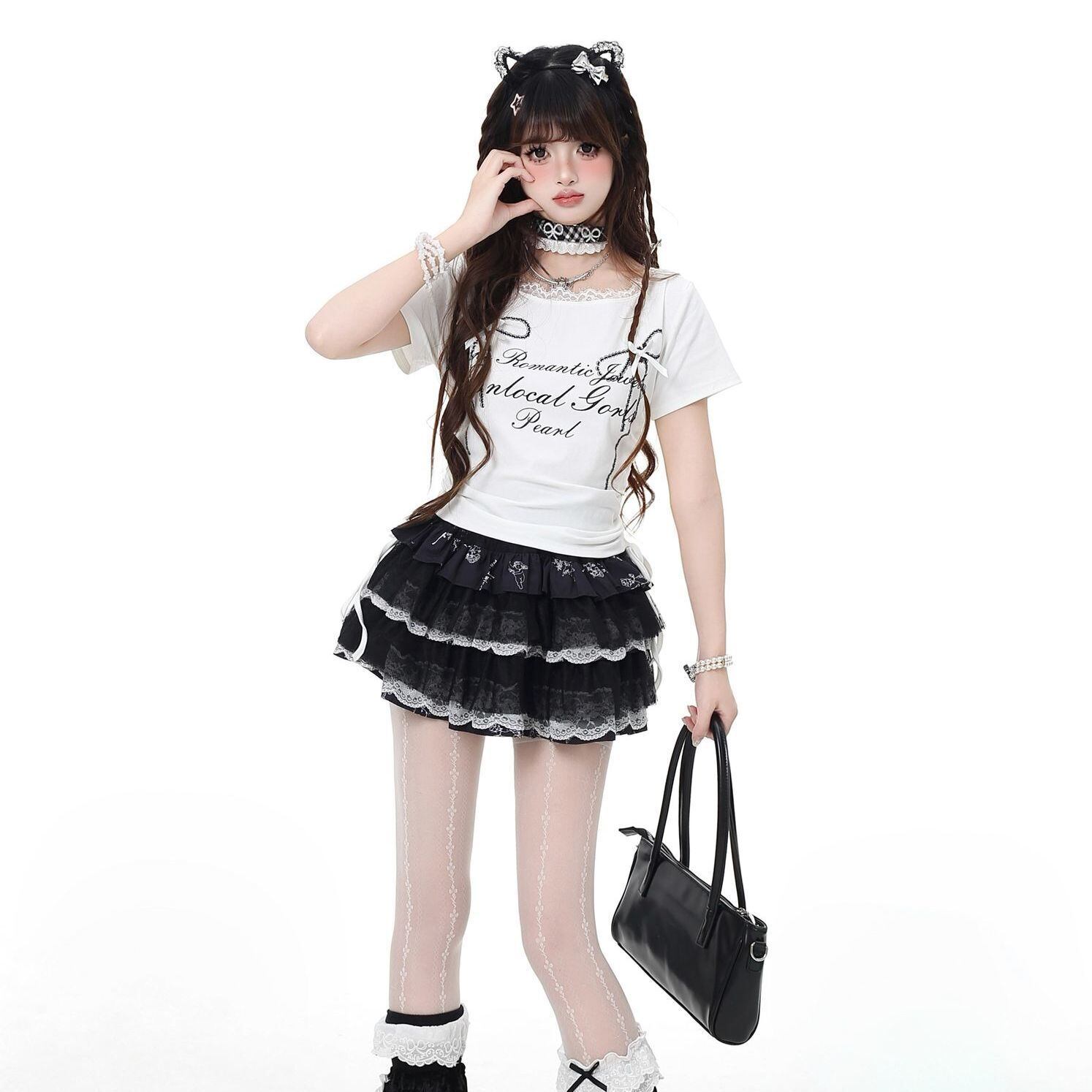 襟元レースと立体リボンで、甘めのガーリー感を最大限に演出。アルファベットプリントがさりげない反抗的アクセントに。普段のお出かけやイベントにもぴったり!スリムなショート丈デザインで、ハイウエストのスカートやパンツと合わせれば、スタイルアップ効果抜群。