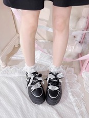 クールでキュートなロリータ風スニーカー。リボンで可愛らしい装飾が施されています。