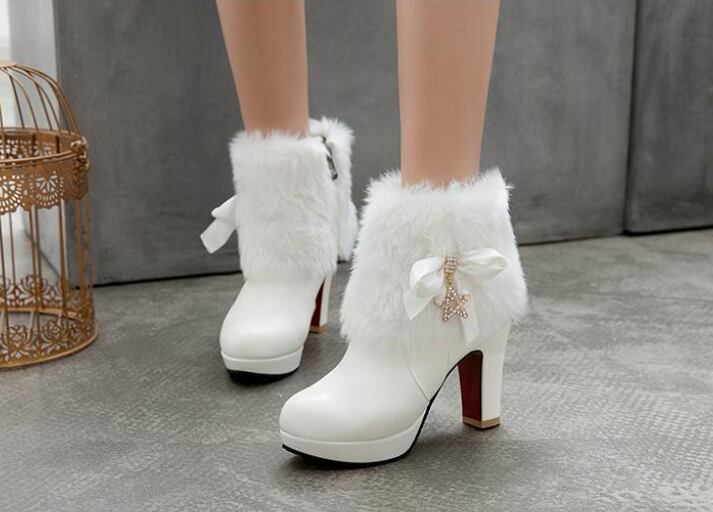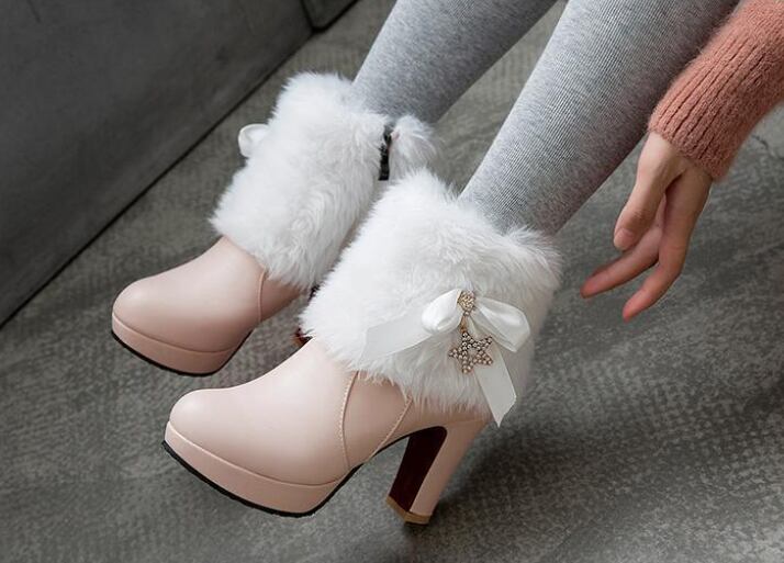 冬にぴったりのエレガントなホワイトファーブーツ